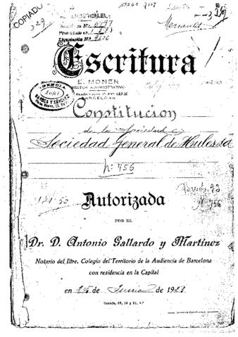 Escritura Constitución de la Sociedad General de Hules - Formal-